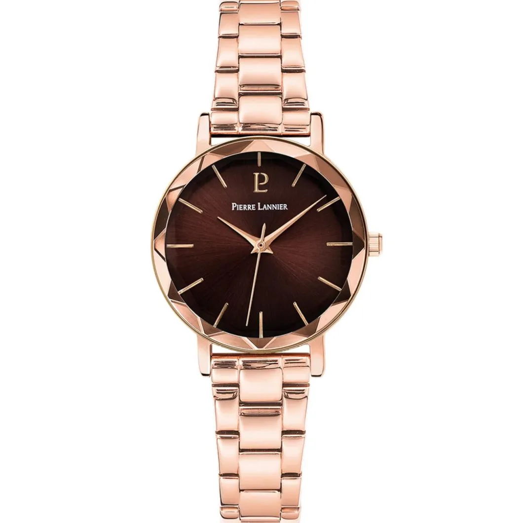 Cette montre femme de la marque Pierre Lannier est un véritable bijou d’élégance. Son boîtier rond de 30 mm de diamètre est en acier de couleur doré-rose. Son bracelet, lui aussi en acier, s’associe harmonieusement au reste de la montre. Quant à l’affichage, il est analognique, garantissant une lecture facile et rapide de l’heure. Son mouvement à quartz assure précision et qualité. Elle est dotée d’une boucle déployante pour un port sûr et confortable. Sa résistance à l’eau jusqu’à 50 mètres en fait une montre appropriée pour les activités du quotidien. Son verre minéral renforce sa durabilité en résistant aux éraflures. La sophistication est concentrée dans cette montre Pierre Lannier.
