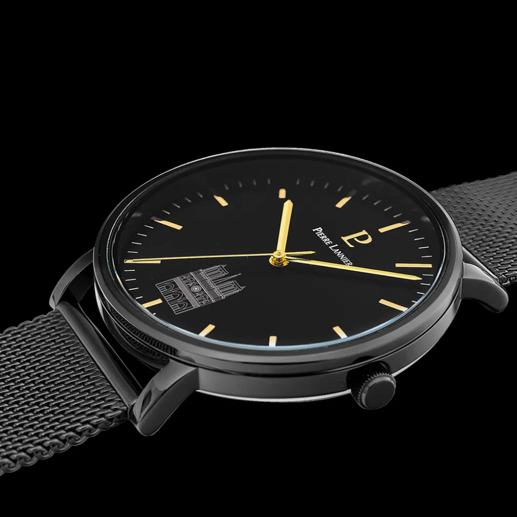 Adressée aux hommes, la montre Pierre Lannier avec son coeur battant est ornée d’un bracelet en acier noir. Elle est caractérisée par un affichage analogique et un boîtier noir rond de 40 mm en diamètre. Secondée par une étanchéité de 5 ATM, cette montre est équipée d’un mouvement à quartz. Sa fermeture se fait par une boucle déployante et elle est munie d’un verre minéral résistant aux rayures. Plongez votre regard sur son cadran et observez les subtils détails qui la caractérisent.