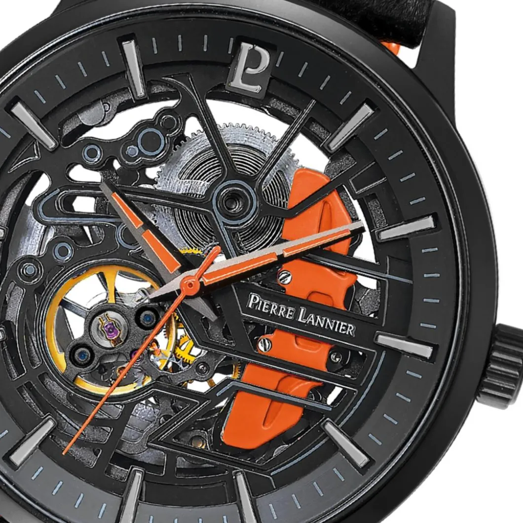 Dévoilant un design signature, la montre homme Pierre Lannier 341A455 Paddock arbore une sophistication racée. Au cœur de son boîtier rond de 43 mm en acier se trouve un précis mouvement automatique indiquant l’heure sur un affichage analogique. Fabriqué dans une teinte très foncée, le boîtier noir complète parfaitement le bracelet en cuir de la même couleur, attaché par une boucle simple pour une tenue sûre. Avec une étanchéité allant jusqu’à 5 ATM, cet accessoire révèle autant de résistance que d’élégance. Son verre minéral protège efficacement toute la mécanique de ce majestueux bijou.
