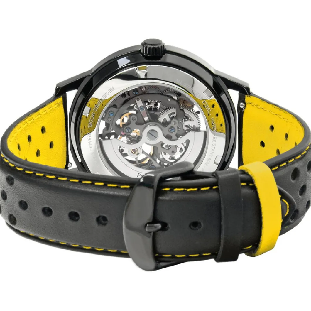 La Montre Homme Pierre Lannier Paddock est dotée d’un boitier en acier de couleur noir, complété par un bracelet en cuir de la même couleur. Sa fermeture est assurée par une boucle simple. Sa forme ronde a un diamètre de 43mm, et son affichage est analogique. Ce garde-temps de marque Pierre Lannier fonctionne grâce à un mouvement automatique, et est étanche jusqu’à 50m (5 ATM). Son verre minéral assure une excellente protection.