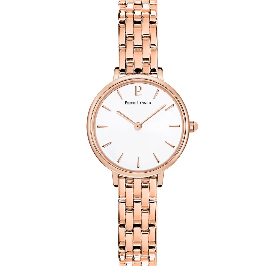 Cette Montre Femme 021J908 – Pierre Lannier de la collection Nova met en avant la douceur et la délicatesse avec sa couleur rose doré et son boitier rond de 26 mm de diamètre.