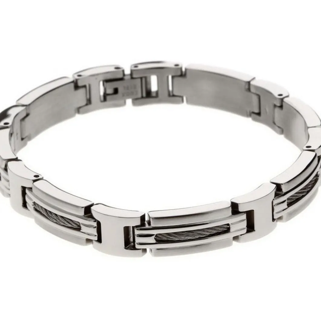 Le bracelet B062360 de la marque Rochet un bijou intemporel qui peut être porté quotidiennement. Entièrement réalisé en acier, il est rehaussé d’un câble argenté en son milieu. Il est assez fin pour allier discrétion et élégance à la fois. Ce modèle intemporel est également un excellent cadeau à offrir.