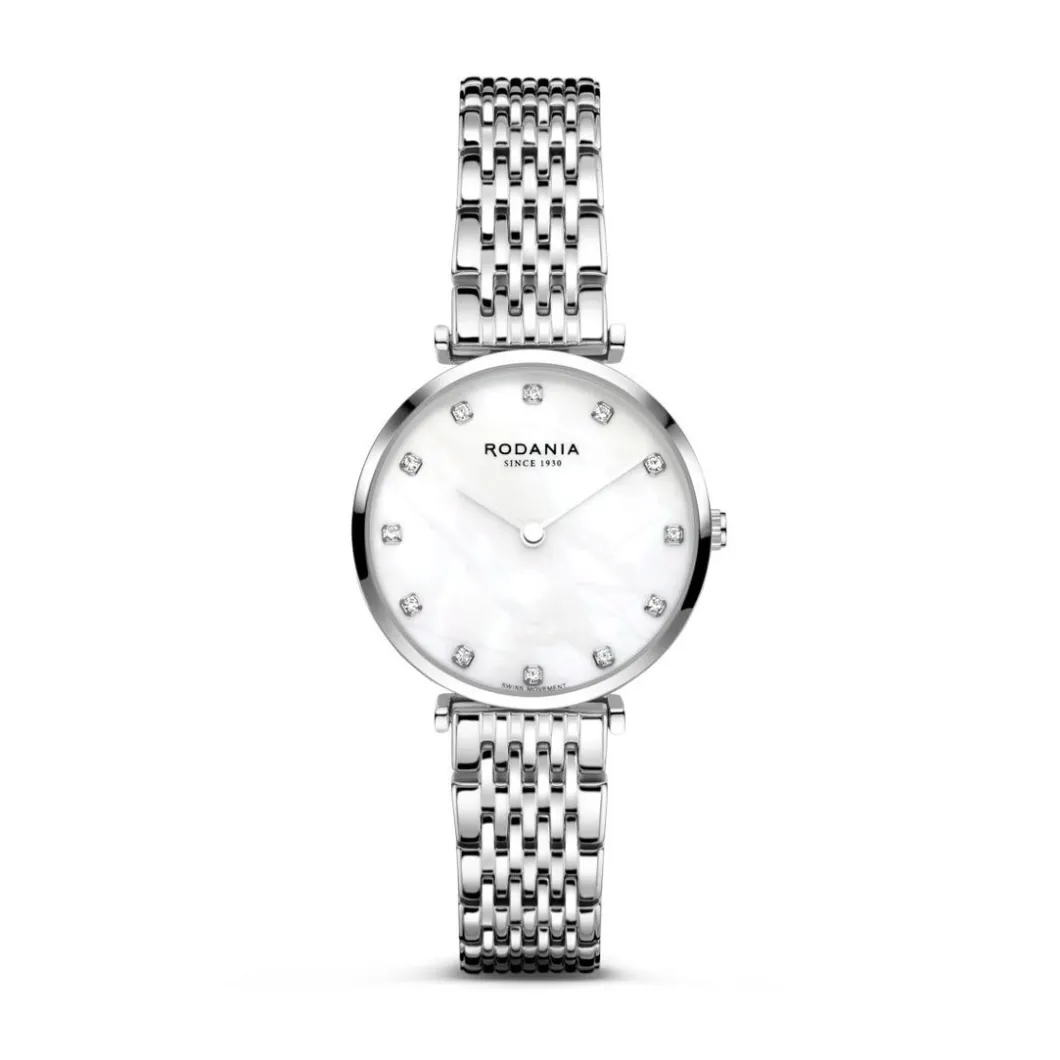 Cette Montre Femme signée Rodania resplendit par son élégance distincte. Le boîtier a une teinte argent, facile à coordonner avec n’importe quel ensemble, rendant cette pièce aussi élégante que fonctionnelle. Son diamètre de 30 mm offre une lisibilité optimale tout en restant discret et raffiné, complétant son allure sophistiquée sans paraître imposant. Cette pièce est indéniablement un choix de premier plan pour exprimer votre style distinctif.