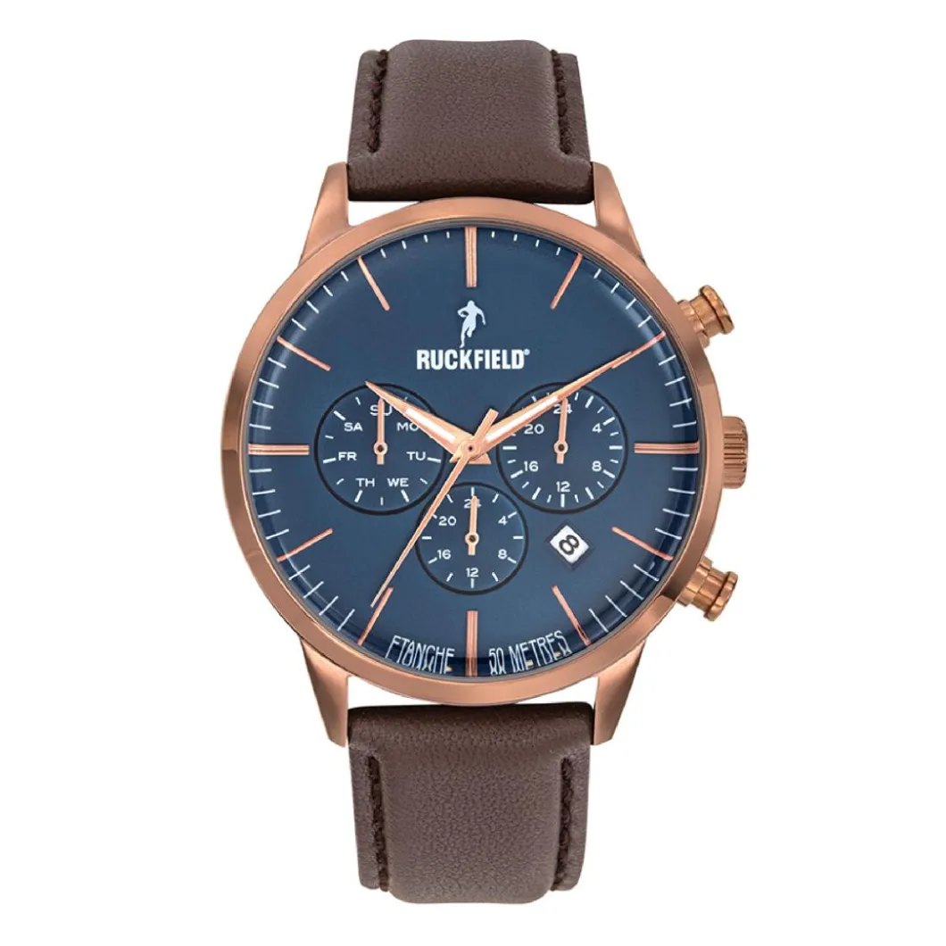 La Montre Homme Ruckfield – 685171 incarne toute l’élégance de la marque Ruckfield. Avec son affichage analogique, l’heure est facilement lisible. Son boitier, d’un diamètre de 41 mm, est en acier robuste de forme ronde. Le bracelet en cuir marron souple confère un confort optimal. L’étanchéité de cette montre est garantie jusqu’à 50 m (5 ATM), idéal pour résister aux éclaboussures occasionnelles. Elle est équipée d’un mouvement quartz pour une précision sans faille. Son verre minéral résiste aux rayures. En plus, elle est dotée de fonctionnalités révélatrices, telle qu’un dateur et plusieurs outils de mesure du temps. Elle se ferme facilement grâce à une boucle simple. Elle est parfaitement conçue pour compléter le style d’un homme moderne.