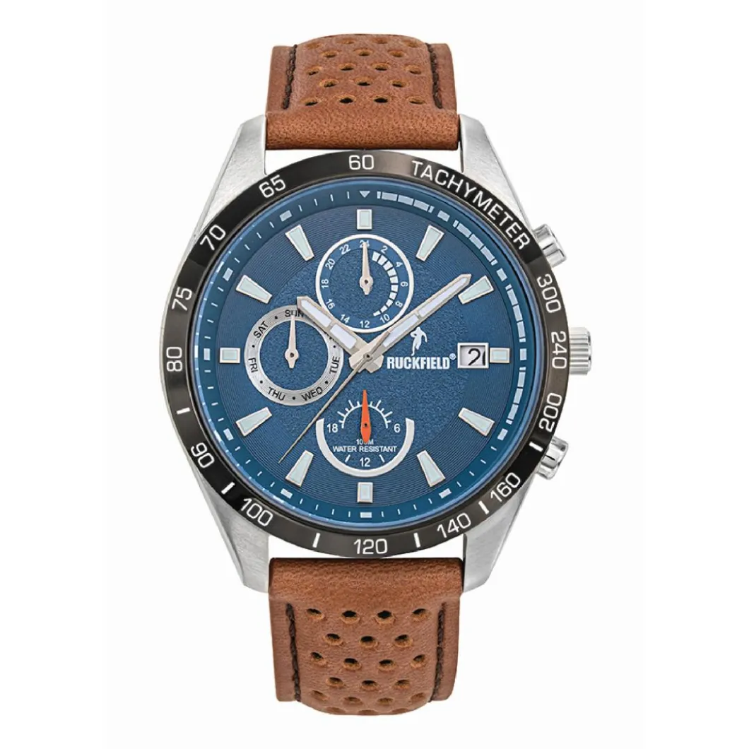 Cette Montre Homme Ruckfield associe le raffinement et l’élégance avec son bracelet en cuir de couleur marron. Elle présente un boîtier de 42 mm de diamètre, fabriqué en acier de couleur argent, qui ajoute une touche de modernité à son design. Dotée d’une résistance à l’eau de 100 m, cette montre est idéale pour les amateurs d’aventure. Elle bénéficie d’un mouvement à quartz de haute précision. Son affichage analogique est assorti à un dateur pratique et des fonctions supplémentaires. Le cadran rond est protégé par un verre minéral résistant. Pour plus de confort, la fermeture est une boucle simple.