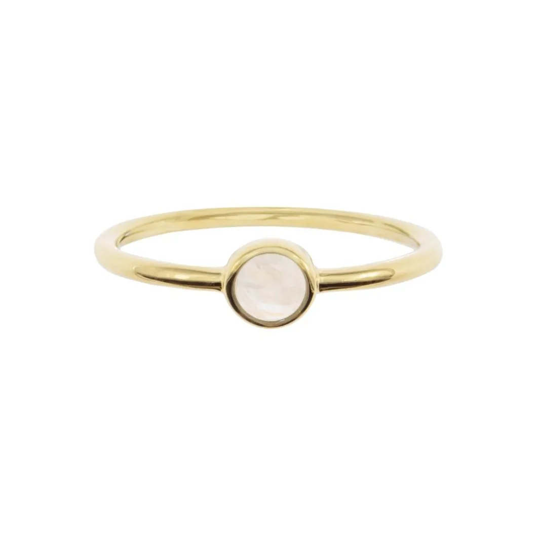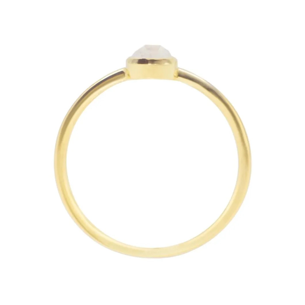 Le plaquage or 18 carats offre à la bague Gemia une lueur chaleureuse et intemporelle, rehaussant la beauté naturelle de la pierre de Lune. Cet équilibre parfait entre un design épuré et des matériaux de haute qualité en fait un joyau unique.