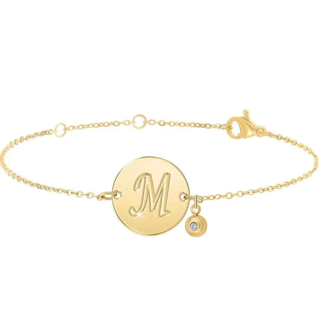 Le Bracelet Femme So Charm est un bracelet initial doré qui ajoute une touche d’élégance à toute tenue. La couleur Doré raffinée du bracelet reflète magnifiquement la lumière, capturant l’attention de tous. Ce bracelet est conçu pour les femmes, apportant un sens de la sophistication et de la classe à leur style. Fabriqué en acier, ce bracelet est non seulement beau, mais aussi durable et conçu pour durer. L’incrustation de diamants ajoute une touche supplémentaire d’éclat à cette pièce, faisant de ce bracelet un véritable bijou. L’image montre des détails supplémentaires, mettant en avant la texture lisse de l’acier et la brillance éblouissante des diamants.