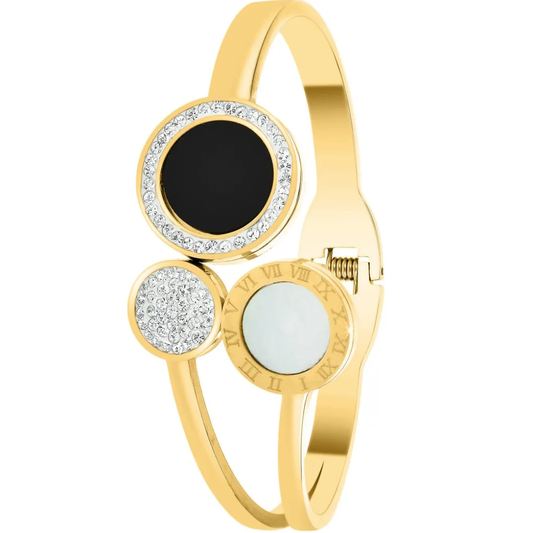 Ce magnifique Jonc femme So Charm est une réelle pièce de mode à ajouter à votre collection. Doré d’éclat, ce bracelet est de couleur Doré, parfait pour ajouter une petite touche de glamour à n’importe quelle tenue. Conçu spécifiquement pour les femmes, il est époustouflant de délicatesse et d’élégance. Fabriqué avec de l’acier solide et durable, sa brillance est rehaussée par de jolis strass incrustés tout autour. Ce bijou n’est pas seulement un accessoire, mais un symbole de finesse et de sophistication. Attention aux détails, comme les fines ciselures ornant le jonc, ajoutant une touche d’élégance supplémentaire. Un incontournable pour les amoureuses du chics!