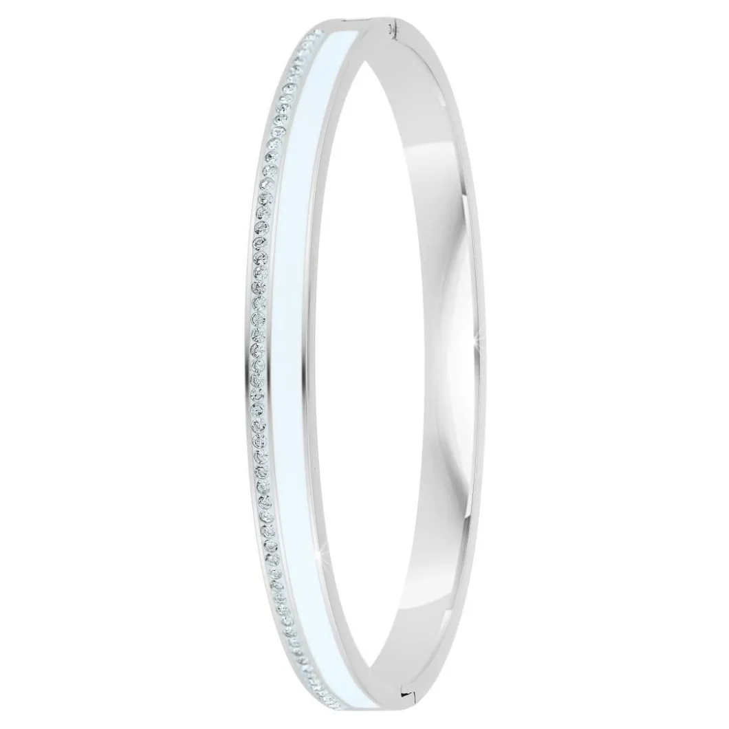 Splendide jonc pour femme de la marque So Charm. Conçu en acier de haute qualité, ce bracelet émaillé argenté affirme une élégance sans égal. Il se distingue par sa couleur blanc immaculé qui sublimera votre poignet avec raffinement. La particularité de ce bijou réside dans les détails délicats des strass incrustés qui apportent une touche de glamour merveilleuse. Ce jonc est exclusivement réservé pour les femmes qui ont un goût prononcé pour le luxe et le raffinement. Ce bracelet strass est l’accessoire idéal pour parfaire une tenue élégante et sophistiquée.