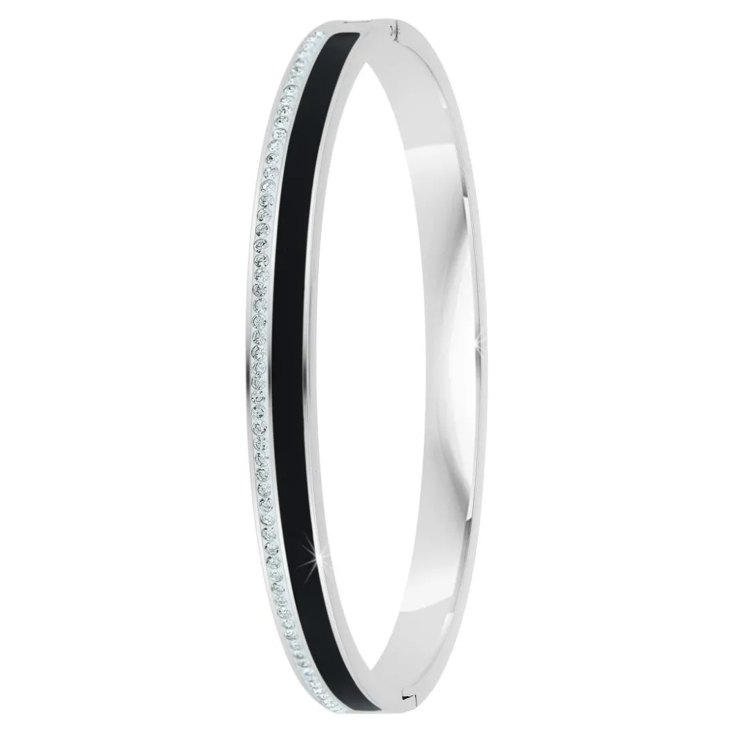 Élégamment conçu pour la femme moderne, ce Jonc So Charm se distingue par son style exceptionnel. Arborant une magnifique couleur Noir, qui ajoute une dimension luxueuse à l’ensemble, ce bracelet est fait de haute qualité Acier et est orné de scintillantes strass. Son design délicat est avancé puisqu’il est fabriqué à partir d’une bande d’émail argenté, ce qui accentue son allure d’une façon très sophistiquée. Ce Jonc est un choix parfait pour vous exprimer avec une touche d’élégance discrète et une pointe de glamour moderne. Portez-le pour ajouter une touche d’élégance à toute tenue.