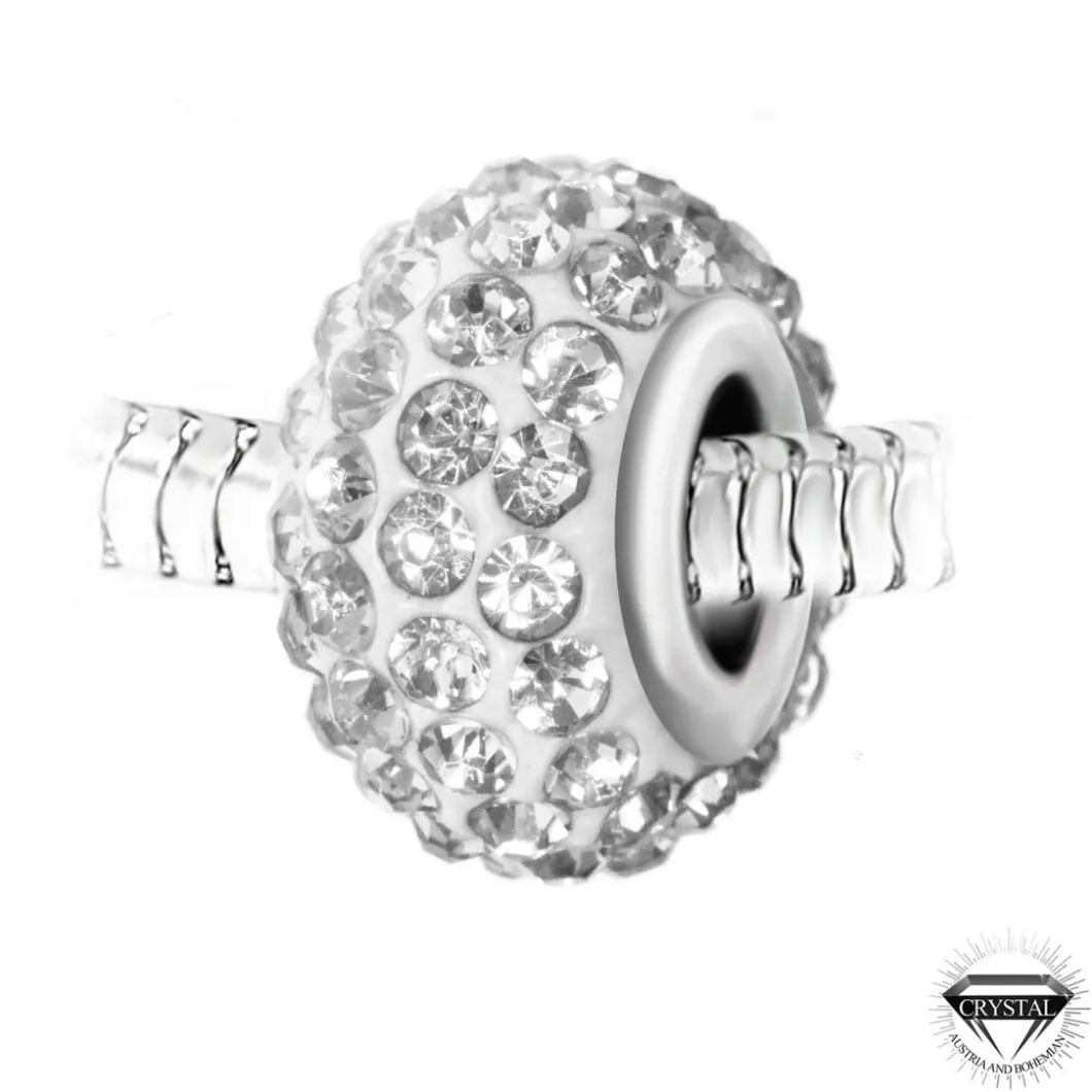Charm perle pavé de cristaux blancs et acier par SC Crystal. Pavé de cristaux de Bohème. Acier inoxydable (garanti sans nickel). Dimensions : 13 à 14 mm. Compatible avec les marques Pandora, Chamilia, … . Charm perle SC Crystal imaginez et créez vos propres bijoux !