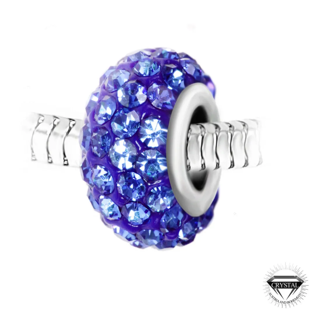 Charm perle pavé de cristaux bleus et acier par SC Crystal. Pavé de cristaux de Bohème. Acier inoxydable (garanti sans nickel). Dimensions : 13 à 14 mm. Compatible avec les marques Pandora, Chamilia, … . Charm perle SC Crystal imaginez et créez vos propres bijoux !