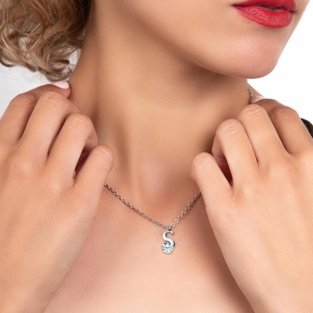 Splendide So Charm collier femme, où finesse et glam sublimeront votre look. La chaîne argentée fine et délicate spécialement conçue en acier robuste et résistant accueille un pendentif sous la forme d’une initiale. L’initiale est enjolivée d’éclatants strass pour une touche de brillance supplémentaire qui complète parfaitement l’élégance Argent du collier. Cet accessoire discret mais sophistiqué, est parfait pour toutes occasions, que ce soit une soirée décontractée ou un événement formel. En le portant, vous racontez non seulement votre propre histoire, mais vous apportez également une subtile sophistication à vos tenues. D’une légèreté agréable, il sera votre compagnon de tous les jours, apportant une touche de raffinement à votre allure.