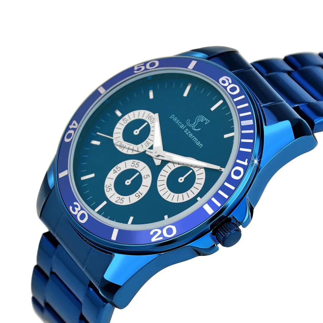 Caractéristiques Montre homme quartz acier bleu par Pascal Szerman