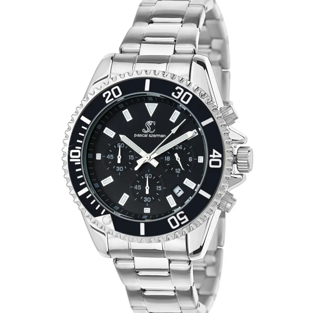 Caractéristiques Montre homme quartz acier et fond noir par Pascal Szerman