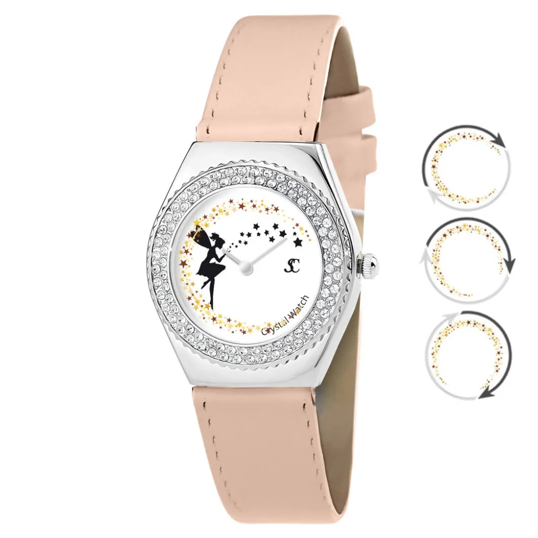 Cette Montre MF316-FEE-BEIGE – So Charm se compose d’un bracelet en cuir et d’un boîtier orné de cristaux. Elle dispose d’un magnifique cadran présentant caractérisé par une trotteuse en nuage de Fée, ainsi qu’une lignée d’étoiles en mouvement.