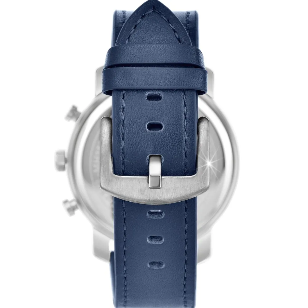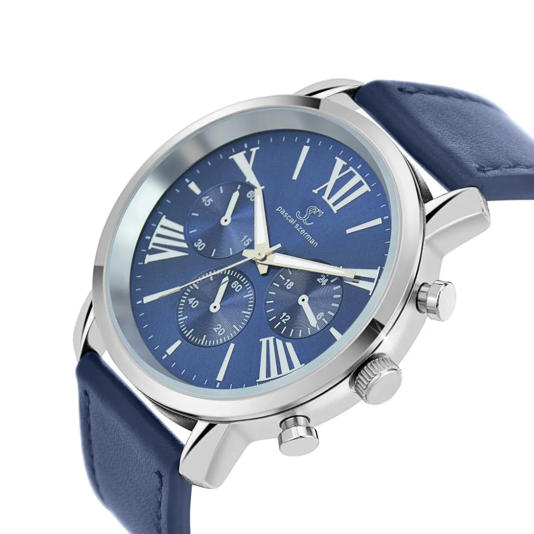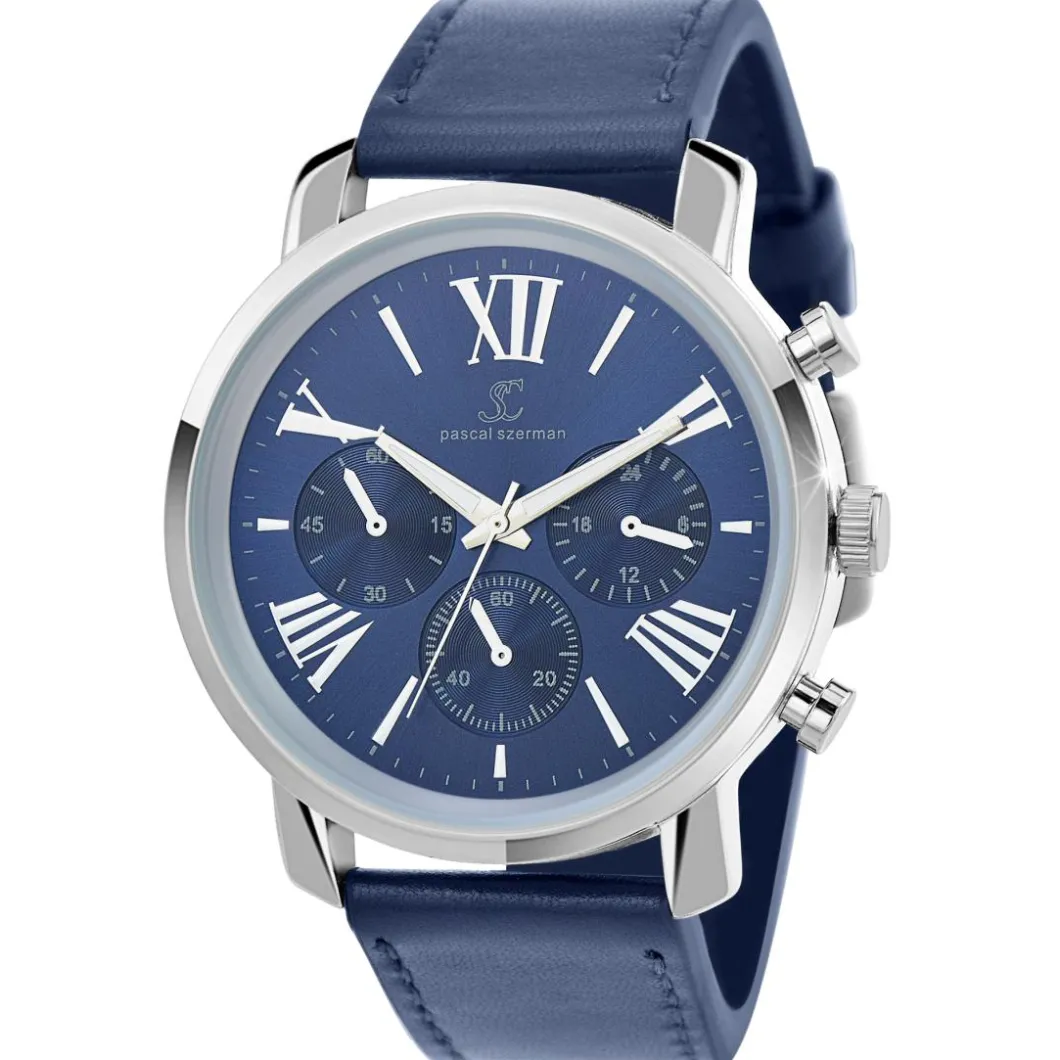 Caractéristiques Montre homme quartz acier et cuir bleu MH289 par Pascal Szerman