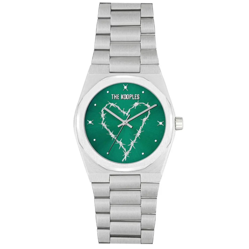 Voici une élégante montre mixte de la marque The Kooples. Son affichage est analogique sur un boîtier rond en acier argenté de 37 mm de diamètre. Le bracelet, de même couleur que le boîtier, est également en acier et se ferme par une boucle déployante. Cette montre est aussi étanche jusqu’à 50m (5ATM) ce qui signifie qu’elle peut être portée pour de la natation de faible intensité mais pas pour la plongée. Le verre minéral protégeant le cadran assure sa durabilité. La montre fonctionne grâce à un mouvement à quartz. Parfaitement adaptée pour les hommes comme pour les femmes, cette montre The Kooples allie sophistication et simplicité.