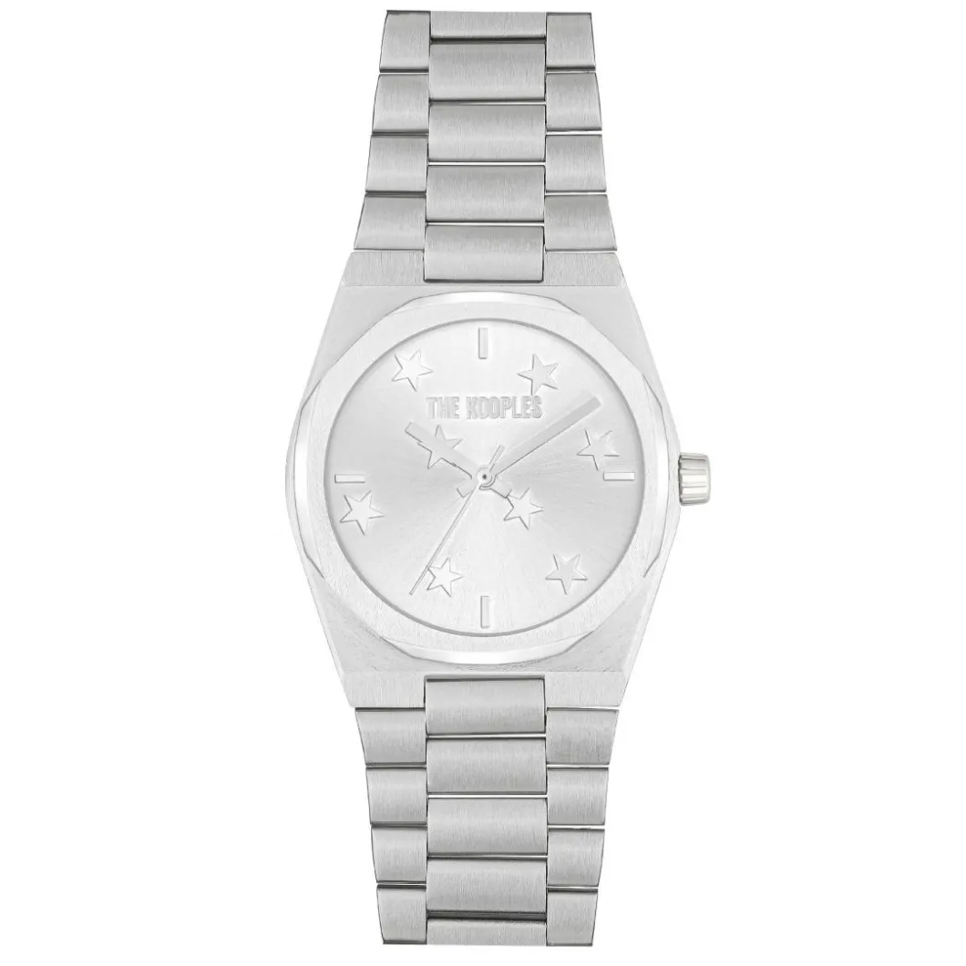 Cette Montre Mixte The Kooples Montres -TKW1018 présente un affichage analogique simple et classique. Le boîtier rond, de couleur argent, est fabriqué en acier robuste, tout comme le bracelet à maille qui adopte une tonalité identique. Le diamètre du boîtier, mesurant 53 mm, confère à cette pièce une allure imposante sans pour autant encombrer le poignet. La montre résiste à une étanchéité jusqu’à 50 m grâce à sa qualité 5ATM. Elle est propulsée par un mouvement quartz et se ferme facilement via une boucle déployante. Le verre minéral, qui la surplombe, est résistant aux chocs et aux rayures. Sa caractéristique unisexe la rend idéale pour tous les genres.