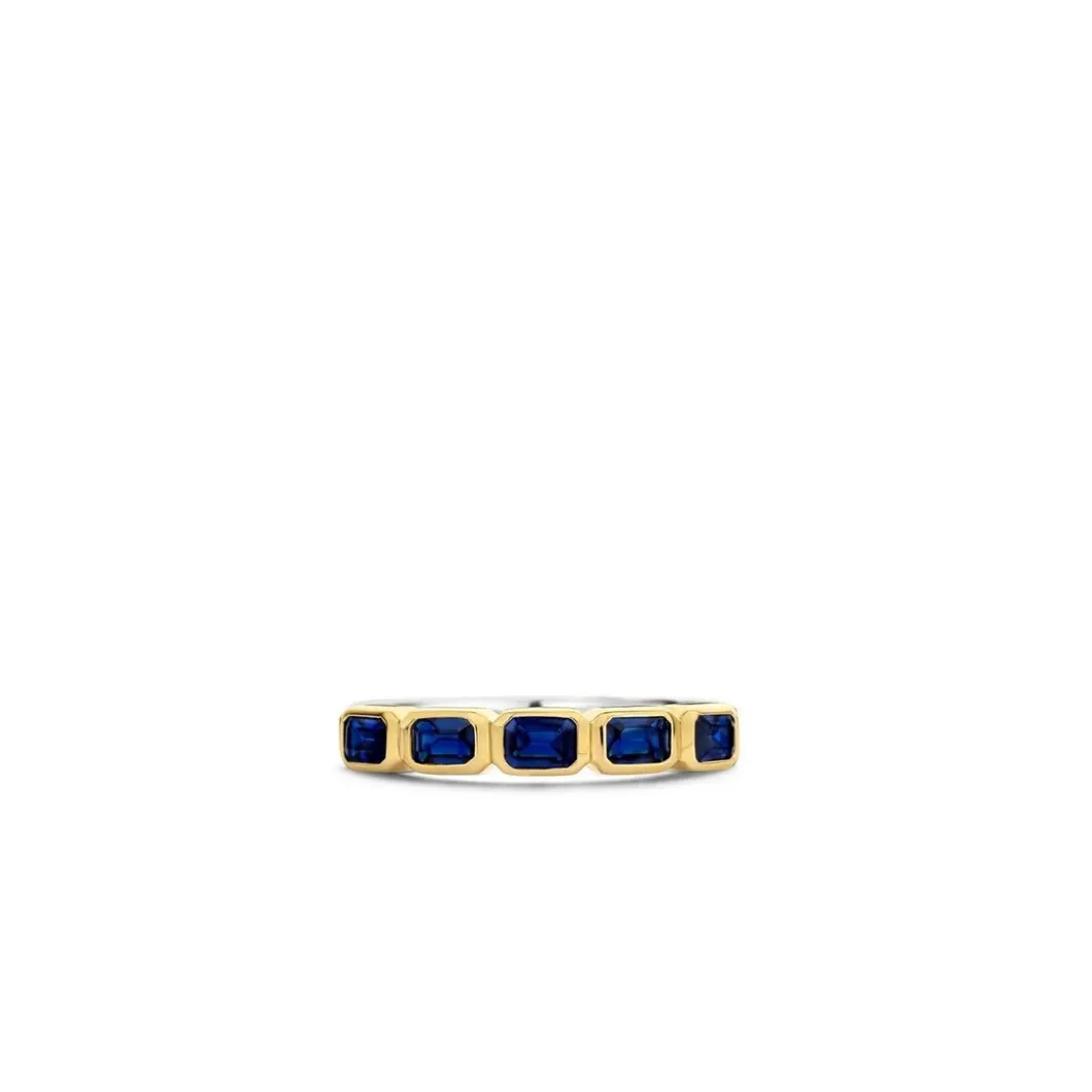 La Bague femme 12274BY apporte une touche luxueuse à toutes les tenues avec sa rangée de pierre colorée et son design arty.
