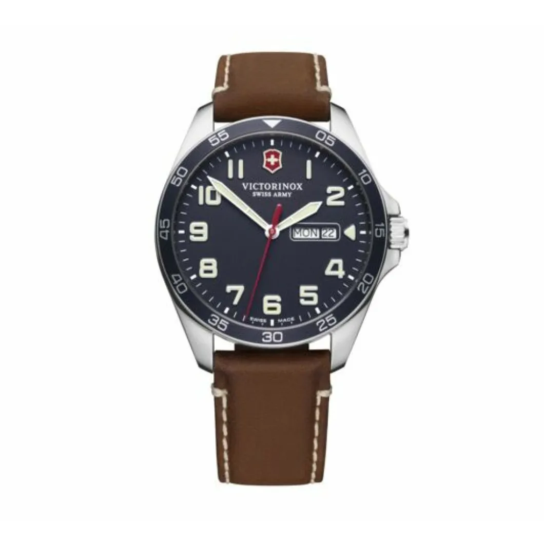 À l’avant-garde dans son domaine, l’indispensable Fieldforce est pourvue d’une aiguille des secondes d’un rouge vif avec contrepoids en forme de couteau suisse. Son cadran est orné de l’emblème de la croix et de l’écusson rouge. Cette montre offre une visibilité incomparable de jour comme de nuit grâce à son affichage au revêtement Super-LumiNova® distinct. Son design dynamique et robuste rend hommage à nos origines. Avec une Fieldforce au poignet, vous savez ce que vous valez et vous atteignez votre but.
