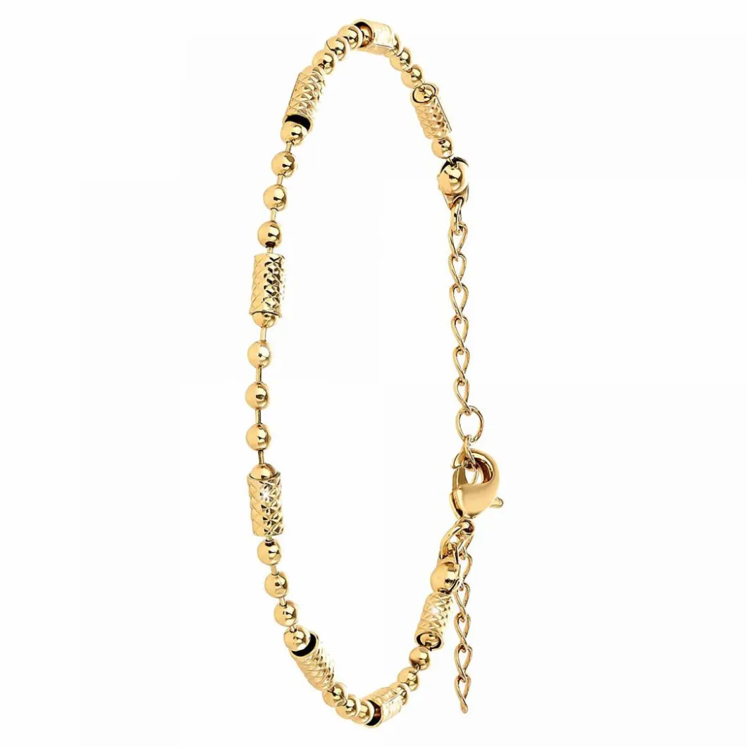 Faites le choix de l’élégance avec le Bracelet Femme – B2377-DORE – Angèle M. Doté d’une chaine en maille boule, portant des perles décoratives en acier argenté sublimées par des gravures en relief, ce joyau sublime complètement le poignet. Il s’associe merveilleusement à tous les styles de tenue simples et habillés.