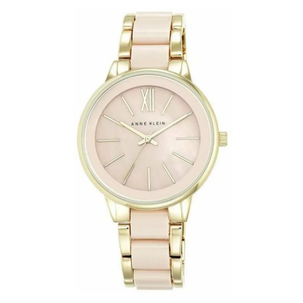 La Montre Femme AK-N1412BMGB – ANNE KLEIN se pare d’un bracelet en acier jaune bicolore qui possède un fermoir à clip. Son boîtier d’un diamètre de 37 mm met l’accent sur un cadran rose aux éléments dorés.