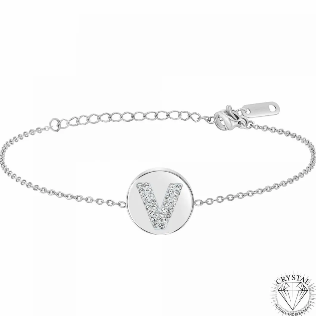 Voici le Bracelet Athème B2693-ARGENT-V Femme, un accessoire chic et personnalisé. Le bijou possède une chaine en maille forçat portant un pendentif médaillon orné de la lettre « V » en sertissage de cristaux de bohême. Le fermoir mousqueton et la rallonge intégrée assurent un ajustement parfait à toutes les morphologies.