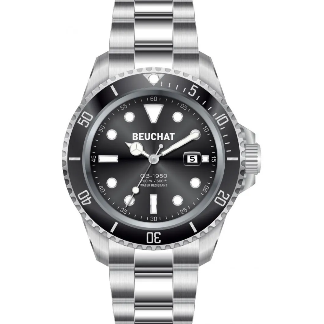 Cette magnifique Montre Homme Beuchat Beu1950-5 – Bracelet Acier Argent est une montre sport résistante et moderne. Avec ses belles couleurs et son mouvement à trois aiguilles, cette montre en acier argenté sera un accessoire de mode pratique et design. Cette montre à affichage luminescent est étanche jusqu’à 200 m de profondeur.