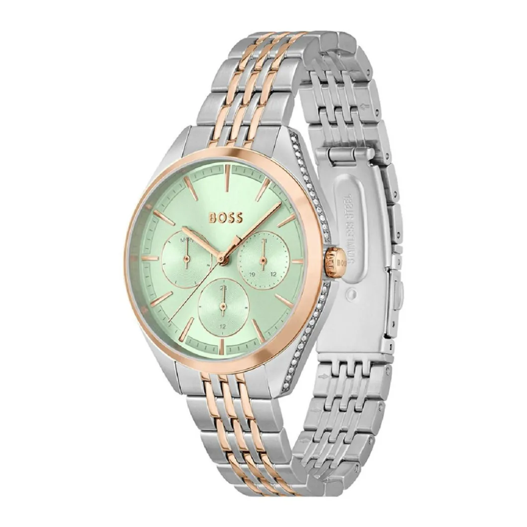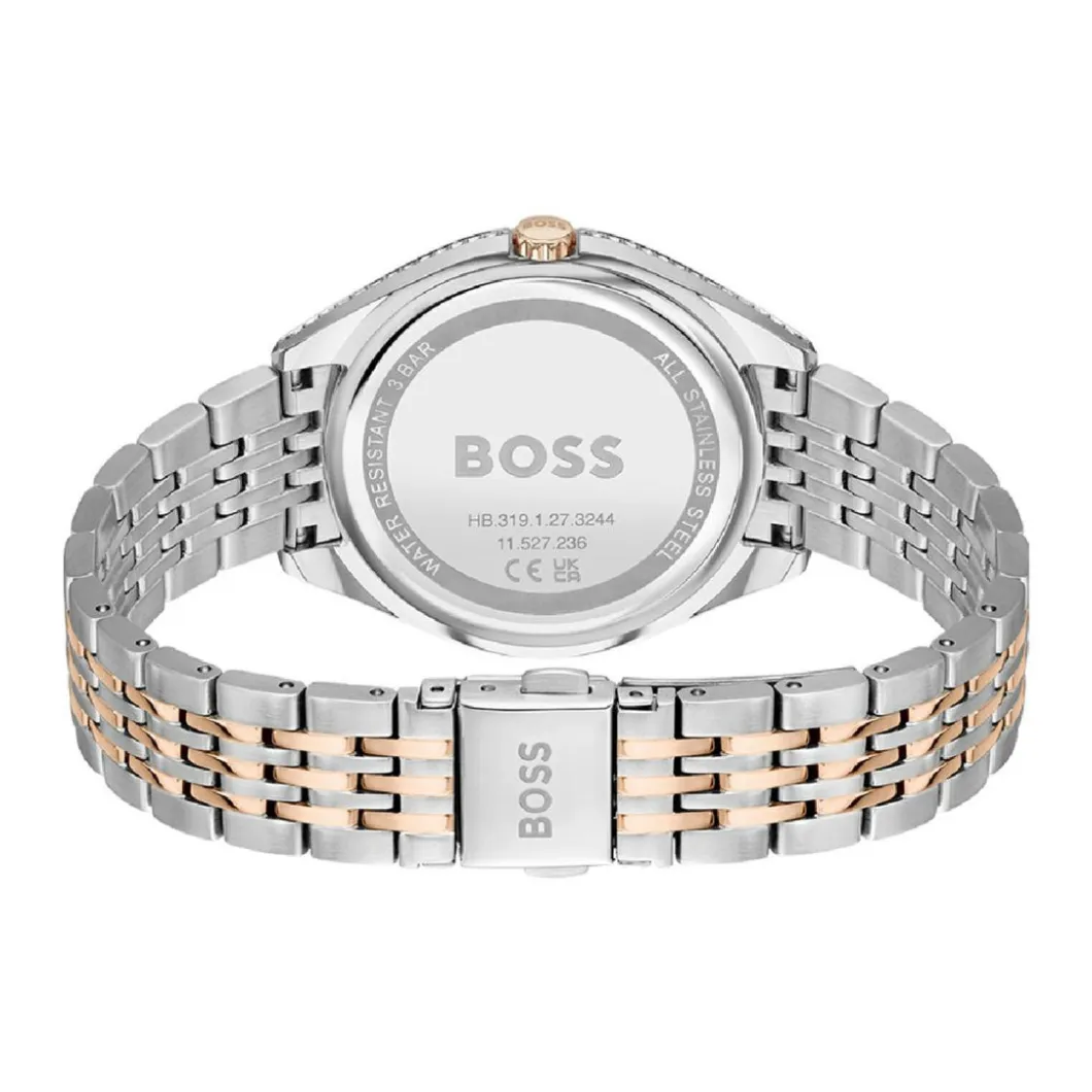 Découvrez une montre féminine signée Boss, luxueuse et élégante. Elle présente un boîtier d’un diamètre de 37 mm, de couleur doré rose qui respire le raffinement. Son bracelet d’une largeur de 16 mm complète harmonieusement le design global de cette pièce. Une montre de choix pour parfaire toute tenue et affirmer une allure résolument chic.
