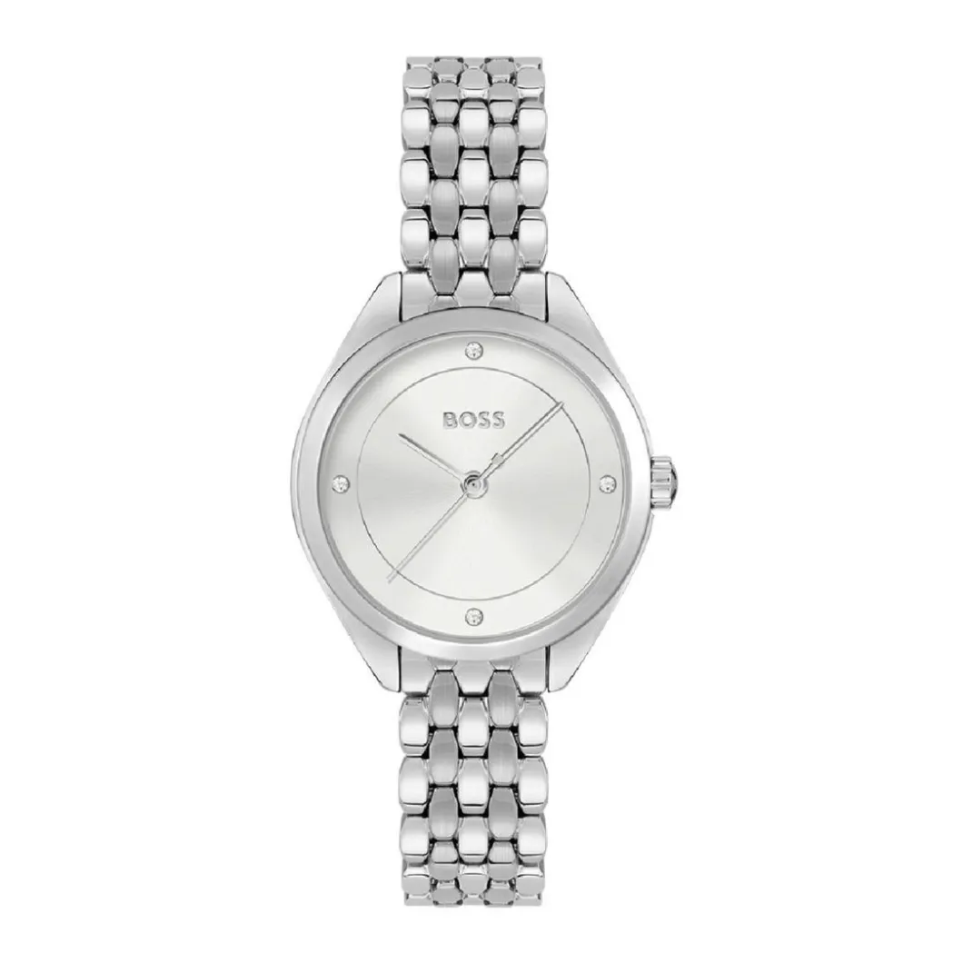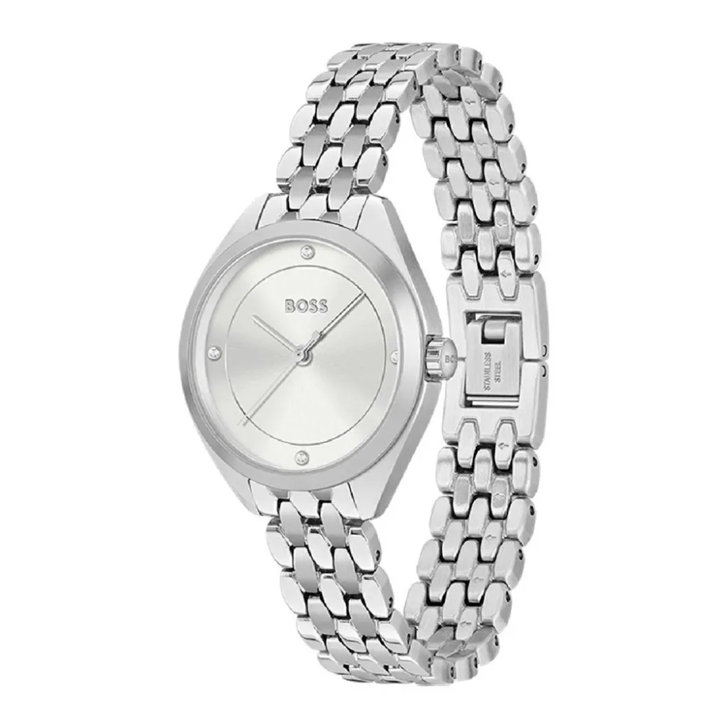 Cette élégante Montre Femme signée du prestigieux label Boss est destinée à illuminer votre poignet par son éclat pur et argenté. Le boîtier, de couleur argent, déploie un diamètre de 25 mm, assumant une présence discrète mais assurée. Complété par un bracelet d’une largeur de 12 mm, ce garde-temps combine harmonieusement design minimaliste et sophistication. Un temps précieux voué à rehausser votre style avec distinction.