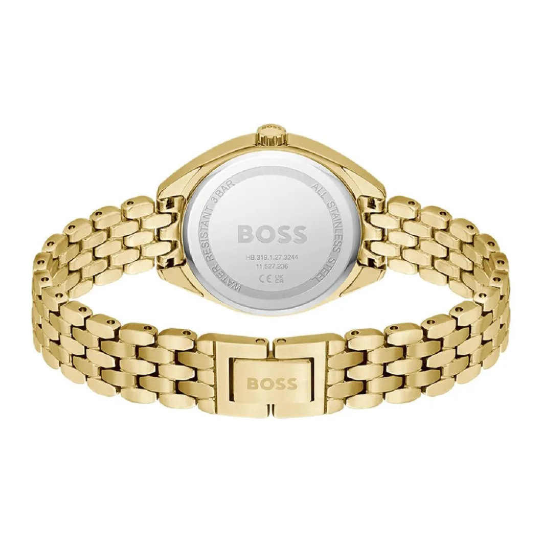 Découvrez la magnifique montre femme signée Boss. Un véritable bijou qui vous permettra d’affirmer votre style grâce à son boîtier doré. Avec un diamètre de boîtier de 25 mm, elle donne une touche d’élégance à votre poignet. Le bracelet d’une largeur de 12 mm parachève le design et apporte la finition parfaite à cette audacieuse création. Un choix judicieux qui témoigne d’une esthétique unique.