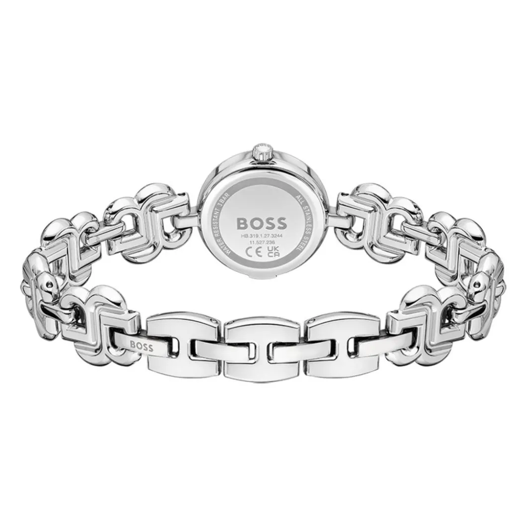 Cette élégante Montre Femme Boss Double B Dressy – 1502793 de marque Boss est conçue pour les femmes de goût. L’affichage analogique, le boitier et le bracelet couleur argent sont en acier de haute qualité, assurant sa durabilité et son aspect élégant. Avec un diamètre de boitier de 23 mm, cette montre est assez petite et délicate pour le poignet d’une femme. Son étanchéité de 30 m (3 ATM) la rend pratique à utiliser, même sous la pluie. La forme ronde du boitier et le mouvement à quartz ajoutent à son charme classique. Quant à la fermeture, elle se fait par boucle déployante pour un enfilage facile. Le verre minéral protège l’affichage contre les égratignures tout en offrant une lisibilité parfaite. C’est un accessoire incontournable pour chaque femme moderne qui apprécie la qualité et le style.