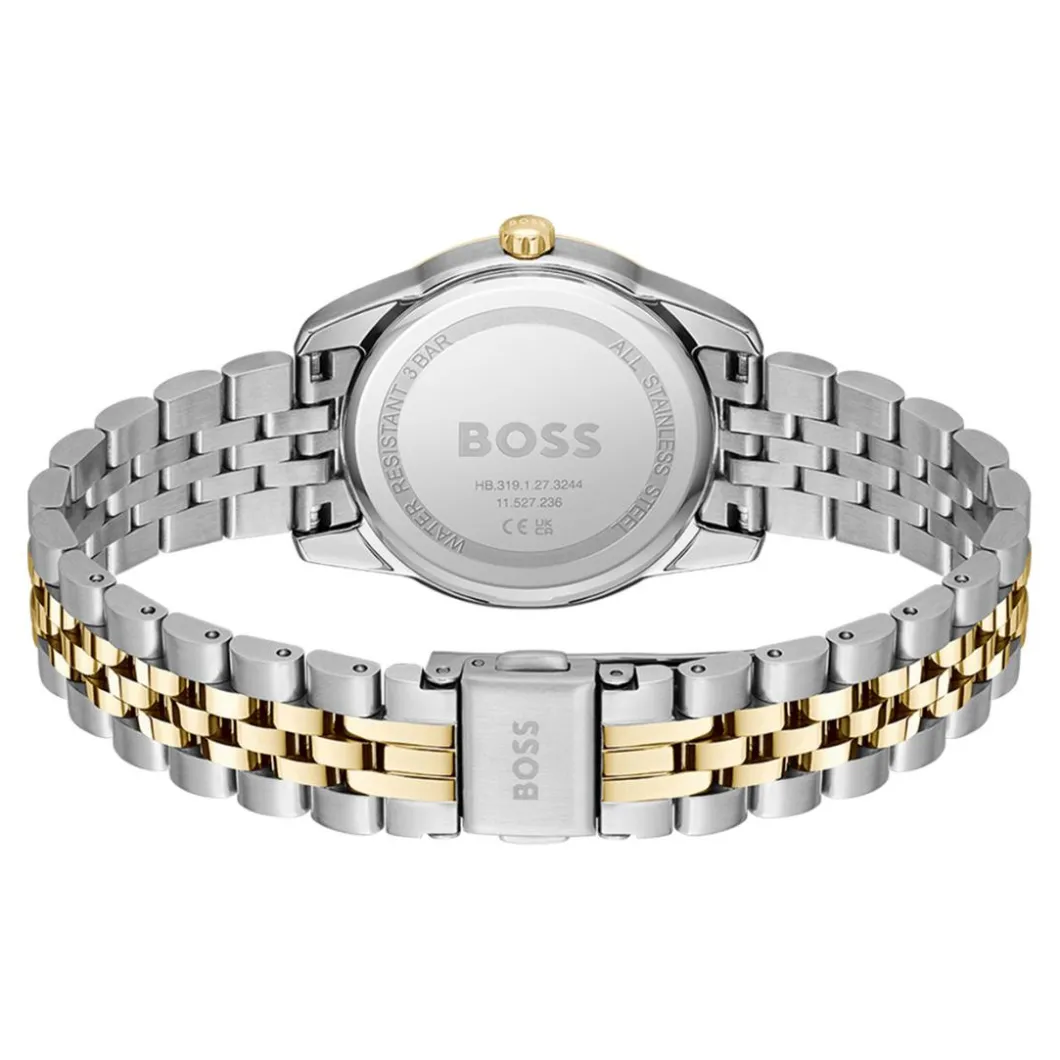 La Montre Femme Boss Graceful Precious, allie élégance intemporelle et style moderne. Véhiculant la sophistication avec son bracelet en acier doré, cette montre se distingue par son incroyable qualité de finition. Son cadran rond de 32 mm, accueille des index délicatement dessinés qui contrastent superbement avec son boîtier en acier d’une couleur argent resplendissante. Le mouvement Quartz garantit une précision infaillible du temps. L’étanchéité de 30 m (3 ATM) assurait une protection fiable contre les intrusions d’eau. La montre s’attache via une boucle déployante pour une sécurité maximale. Le verre minéral robuste de la montre ajoute une protection supplémentaire contre les rayures et les chocs.