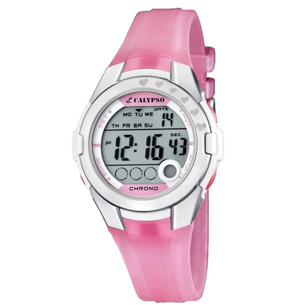 Montre Fille Calypso K5571-2 convient parfaitement au poignet d’une fille. Elle est dotée d’un design fantaisie. La lunette est sertie de cœurs sur le côté. Ce bijou est équipé d’un chronographe et d’un dateur avec affichage jour. Le bracelet est en résine et le boîtier en acier inoxydable.
