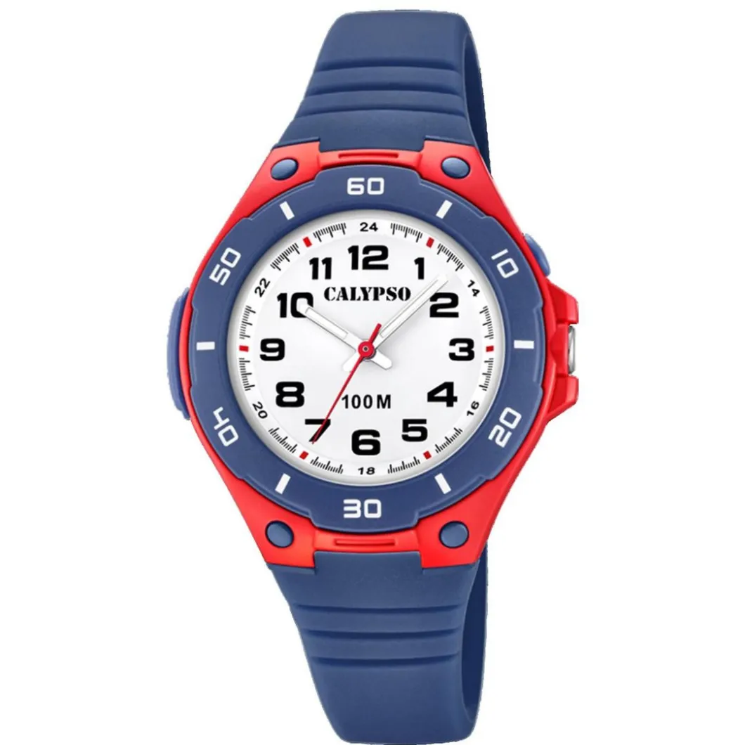 Offrez à votre enfant cette nouvelle Montre Calypso K5758-1 pour garçon. Entièrement élaborée en silicone de couleur bleu et rouge, elle offre un cadran blanc pédagogique facilitant la lecture de l’heure. Un design travaillé et une allure inspirant fraîcheur et lègerté.