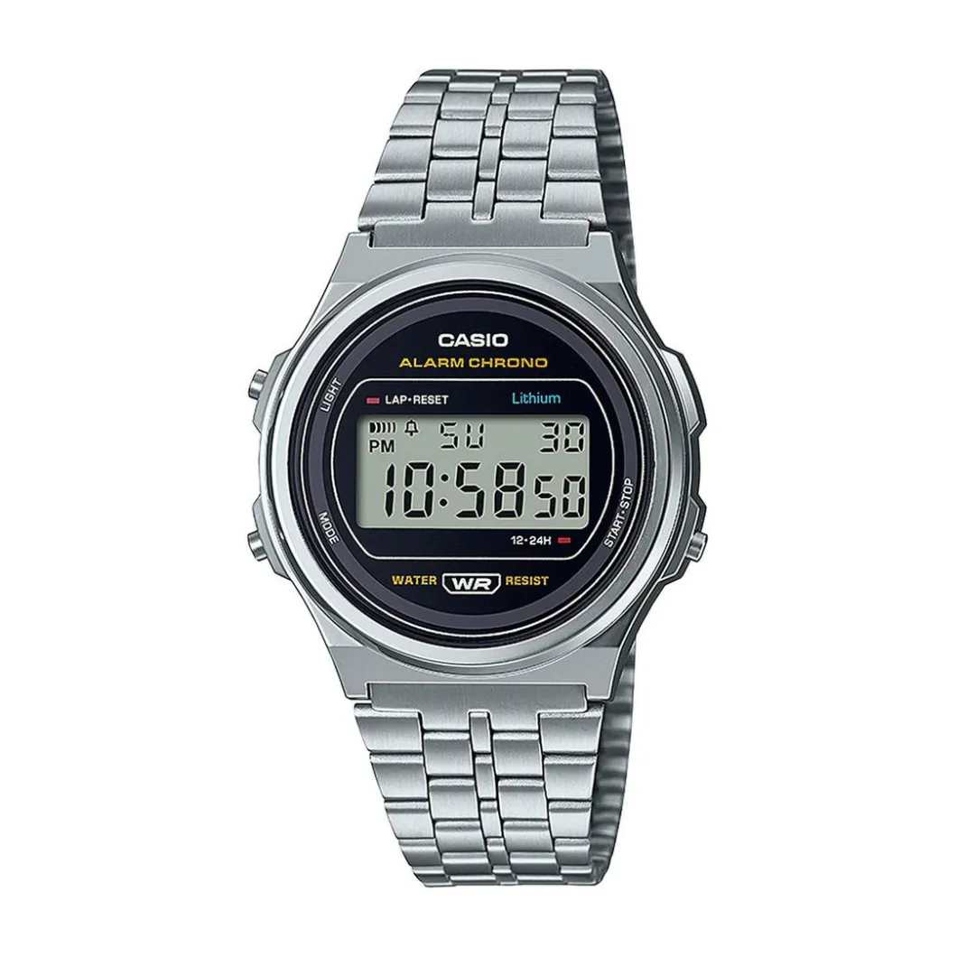 Craquez pour les détails épurés et le design unisexe de cette Montre mixte A171WE-1AEF – CASIO VINTAGE. Elle se caractérise par son boîtier rond en résine résistant et son bracelet en acier argenté.