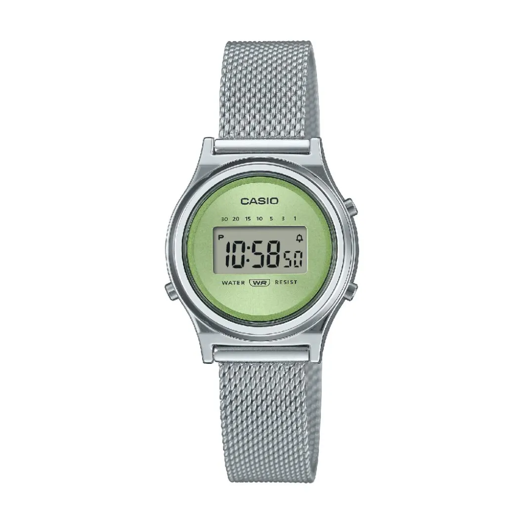 Exquise et élégante, cette montre femme Casio – LA700WEM-3AEF est la sublimation de la finesse et du raffinement. Dotée d’un bracelet en acier argent soigneusement travaillé de la marque Casio, elle propose un affichage analogique pour une lecture simple et efficace de l’heure. Le boîtier de la montre, rond et d’une couleur argent harmonieuse, a un diamètre de 26 mm. Il est fait de résine, matériau connu pour sa robustesse. Le mouvement de quartz confère précision et fiabilité au mécanisme. Le verre de protection est en plastique, ajoutant une touche de légèreté à la montre. Par ailleurs, la fermeture de type boucle déployante facilite son utilisation. Cette montre est un magnifique objet de mode féminin.