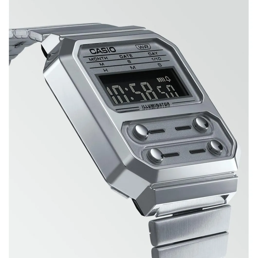 Cette Montre pour homme avec bracelet en acier argenté de la marque Casio ne séduit pas seulement grâce à son design rétro chic. Elle capte également l’attention avec son boîtier et son bracelet en acier qui lui confère une grande résistance. Fonctionnelle, elle dispose de plusieurs options pour plus de praticité.