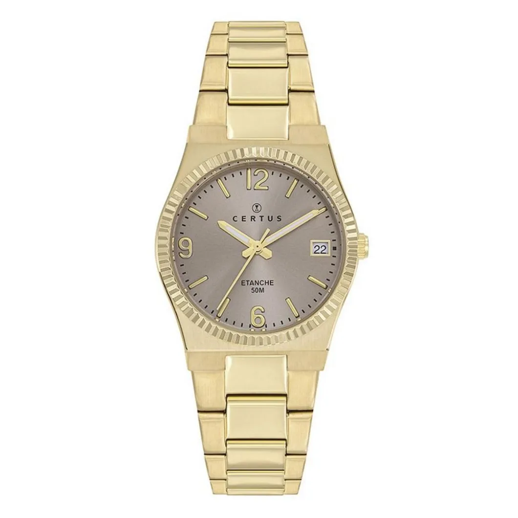 Cette luxueuse Montre Femme Certus est une merveille à porter. Elle possède un boitier doré rond de 30 mm, fabriqué en acier, qui donne une impression de robustesse et de durabilité. Son bracelet en acier, de couleur dorée, ajoute un éclat éblouissant à l’ensemble. L’affichage analogique est facile à lire tandis que le mouvement quartz assure une précision de l’heure inégalée. En outre, elle a la capacité d’afficher la date. Au niveau de la fermeture, elle utilise un système de boucle déployante, très pratique. De plus, elle résiste à une profondeur de 50 m sous l’eau, soit 5 ATM. Le verre minéral du cadran offre une protection contre les rayures. Cette montre est purement féminin.
