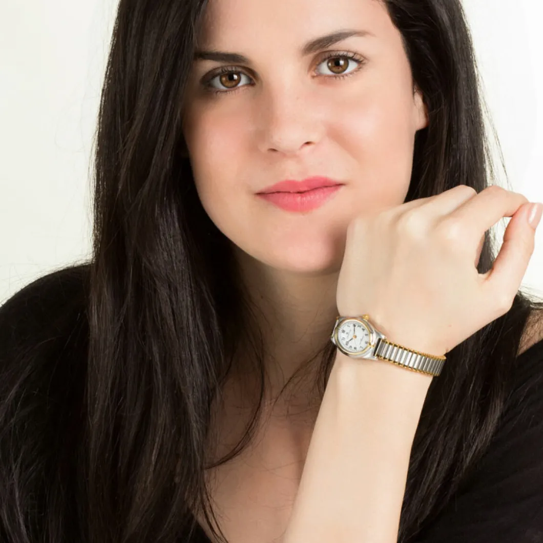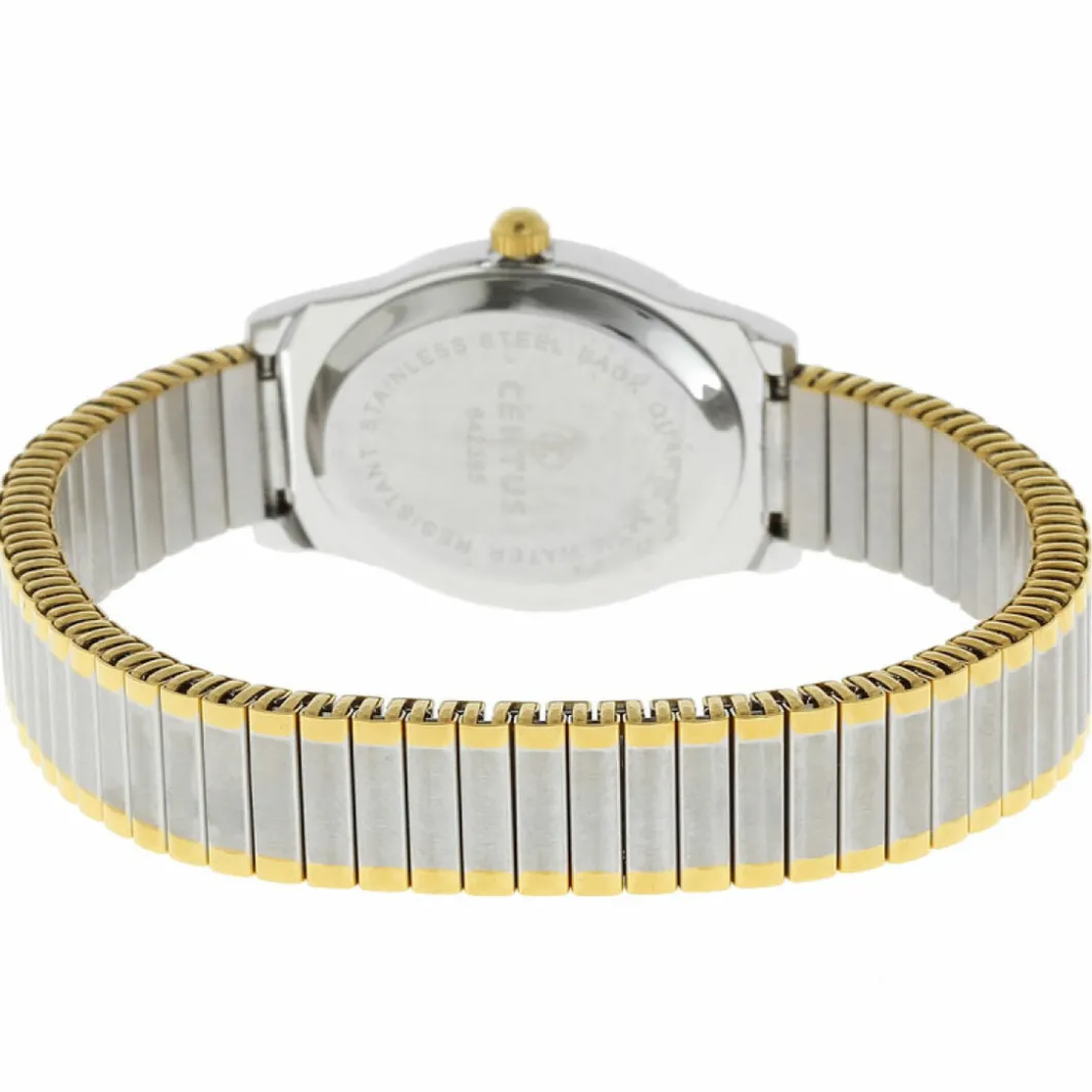 Montre Femme Certus 642385 avec son bracelet en acier argenté et doré, boîtier acier et cadran blanc.