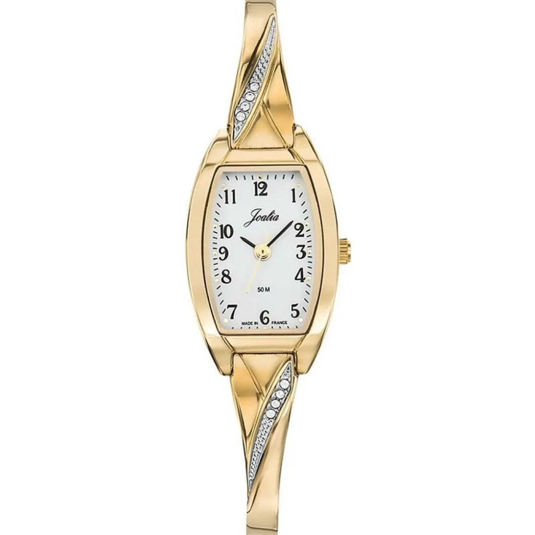 Adoptez un look simple et subtil avec la Montre Femme Certus JOALIA 630514. Ce modèle se distingue par son boitier tonneau lié à un fin bracelet métal doré décoré de pierres swarovski. Son cadran aux index chiffres arabes noirs lui donne une touche exquise. Elle trouvera sa place dans votre collection de montre avec son mécanisme à quartz et son affichage analogique