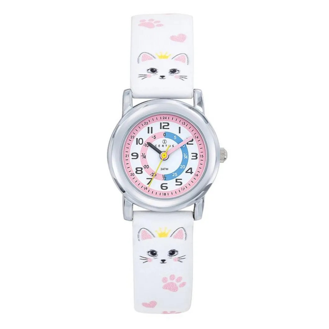 Cette Certus Junior est une montre fille affichant une jolie allure moderne et féminine. Dotée d’un affichage analogique, son boitier de couleur argent présente un diamètre de 27 mm, de forme ronde pour plus de style et de classicisme. La montre possède un élégant bracelet blanc qui s’accordera parfaitement à toutes les tenues de votre enfant. Avec son étanchéité jusqu’à 30 m (3 ATM), elle n’aura pas à s’inquiéter de l’abimer au contact de l’eau. Son mouvement quartz garantit une précision de l’heure optimale. Le type de fermeture, une boucle simple, permet un ajustement facile et rapide, tandis que le verre minéral la protège efficacement contre les rayures. Un joli cadeau pour une petite fille.
