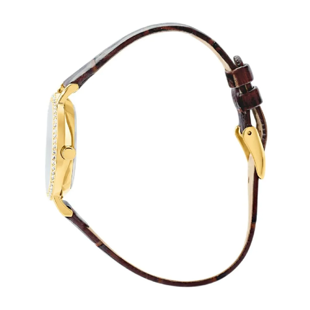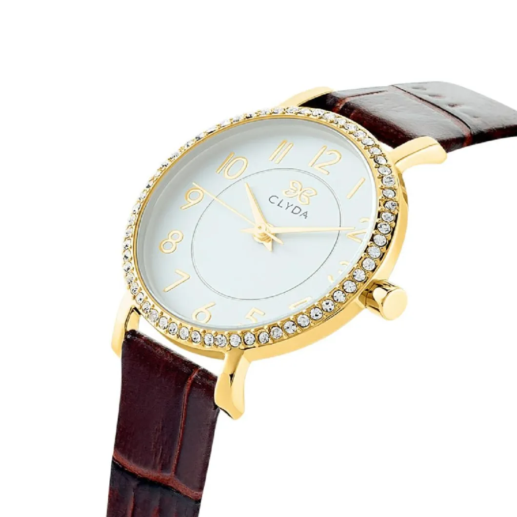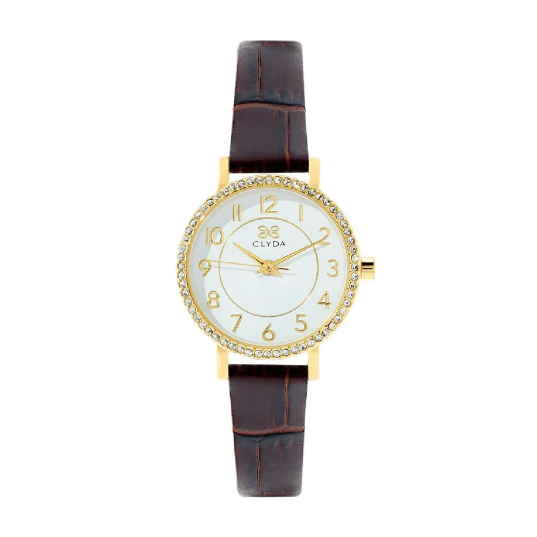 La magnifique Montre Femme Clyda Justine – CLA826DWR présente un design élégant avec un bracelet en cuir de couleur marron. Le boîtier rond doré, en acier, mesure 28 mm de diamètre, apportant une sophistication discrète mais indéniable à cette pièce. L’affichage est analogique, accentuant le charmant style vintage de la montre. Le bracelet en cuir marron est fermé par une boucle simple pour un maintien sûr. Cette montre Clyda est alimentée par un mouvement Quartz, garantissant précision et fiabilité. Avec une étanchéité de 50 m (5 ATM), elle est également résistante à l’eau. Le verre minéral protège le cadran de cette montre réservée aux femmes.