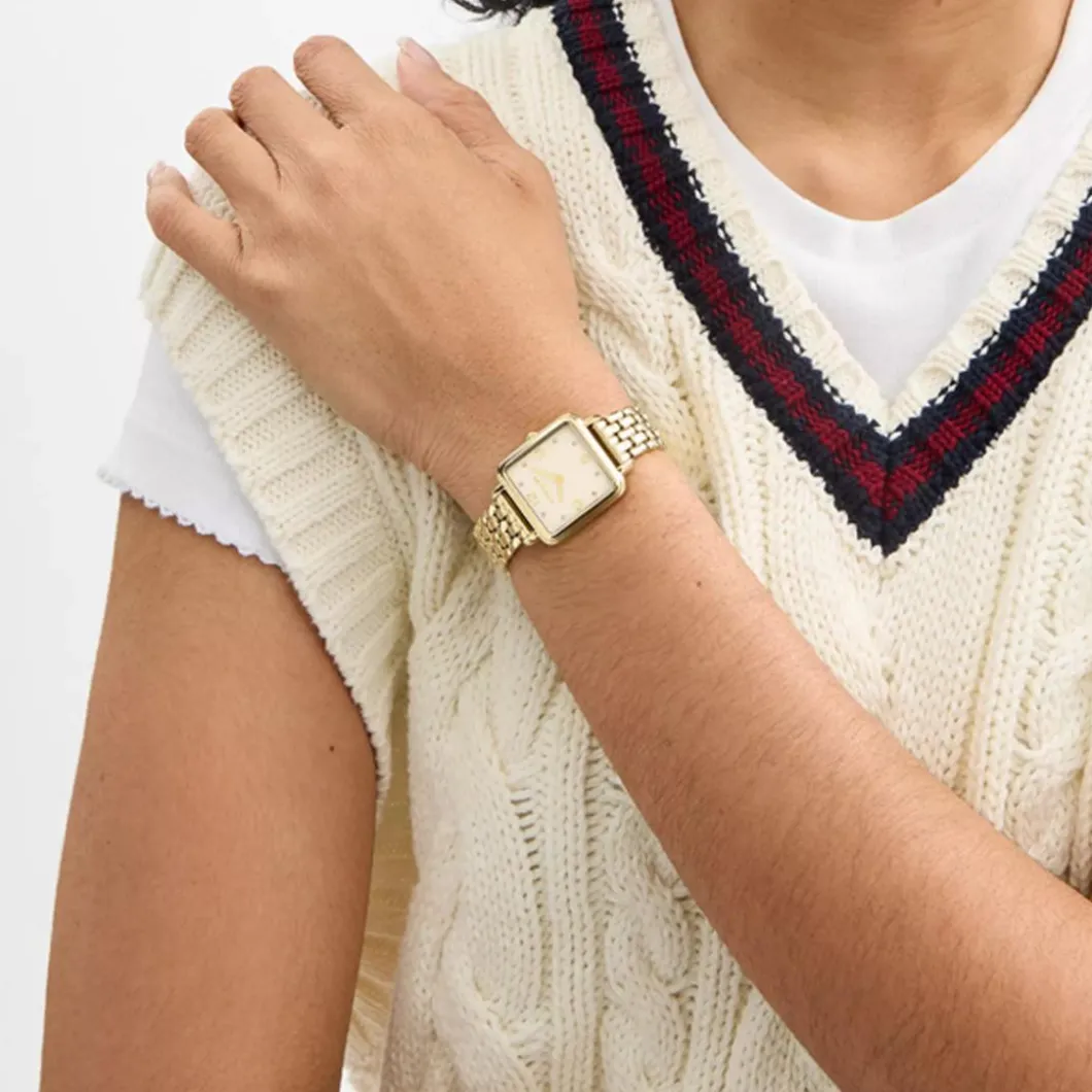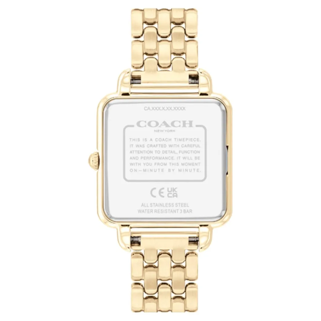 La Montre Femme Coach Cass – 14504495 est un délicieux mélange d’élégance et de raffinement. Son boîtier carré de 28 mm, affichage analogique, est fabriqué en acier et affiche une superbe teinte dorée. Le bracelet assorti, également en acier doré, se ferme grâce à une boucle déployante pratique. Le mouvement quartz de qualité garantit la précision et la fiabilité. Avec une étanchéité jusqu’à 30 m (3 ATM), elle est résistante aux petites projections d’eau. Le verre minéral qui protège le cadran est résistant aux rayures. Le dessin détaillé sur le cadran ajoute une touche de sophistication subtile. Elle est parfaite pour les femmes qui cherchent à allier luxe et fonctionnalité.