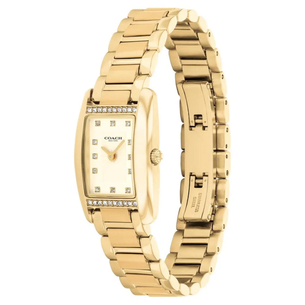 La Montre Femme Coach Reese – 14504588 est un accessoire véritablement élégant. Avec sa couleur dorée rayonnante, elle attire immédiatement le regard. Elle est équipée d’un bracelet en acier, robuste et toujours brillant. Le boîtier, rectangulaire et doré, a un diamètre de 20 mm, idéal pour les poignets délicats. Ce garde-temps fonctionne grâce à un mouvement quartz, garantie d’une précision inégalée. Il est étanche à 30 m (3ATM), parfait pour résister aux éclaboussures. Le verre minéral protège le cadran analogique. La montre se ferme à l’aide d’une boucle déployante, facile à utiliser. Que ce soit pour un cadeau ou un plaisir personnel, cette montre ajoute une touche de sophistication chic à n’importe quelle tenue de femme.