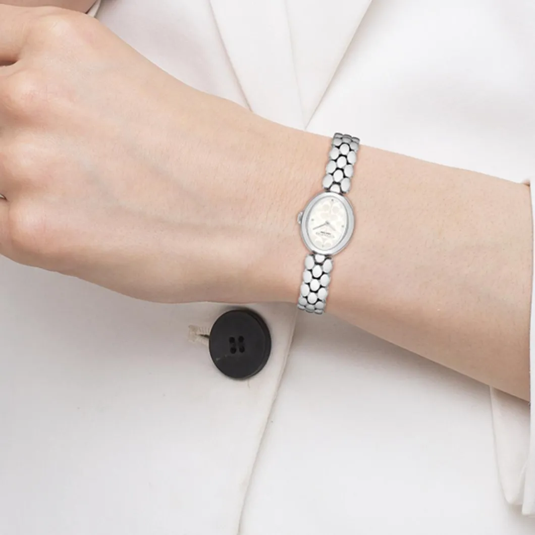 Cette élégante Montre Femme Coach Sammy – 14504416 Bracelet Acier Argent de la marque Coach allie design et fonctionnalité. Elle présente un affichage analogique sur un boitier ovale en acier de couleur argente. Le bracelet de même couleur est également en acier et se ferme grâce à une boucle déployante. La montre a un diamètre de boitier de 23 mm, est étanche jusqu’à 30 m (3 ATM) et fonctionne à quartz. Le verre minéral protège le cadran et offre une résistance aux éraflures. Conçue pour les femmes, la montre dégage une aura de sophistication discrète et est idéale pour toutes les occasions.