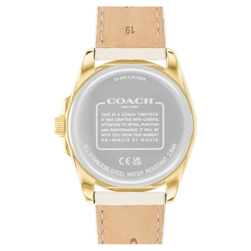 La Montre Femme Coach Greyson – 14504141, signée par la prestigieuse marque Coach, est l’alliance parfaite de l’élégance et de la simplicité. Arborant un boitier rond doré en acier de 36 mm, elle est dotée d’un affichage analogique clair sur fond blanc, et d’un verre minéral très résistant aux rayures. Son bracelet en cuir blanc, haut de gamme, est fermé par une boucle simple qui assure un maintien parfait. Dotée d’une étanchéité jusqu’à 30m, cette montre à quartz ajoute une touche de chic et de charme à toutes les tenues. Ses caractéristiques témoignent de sa qualité exceptionnelle.