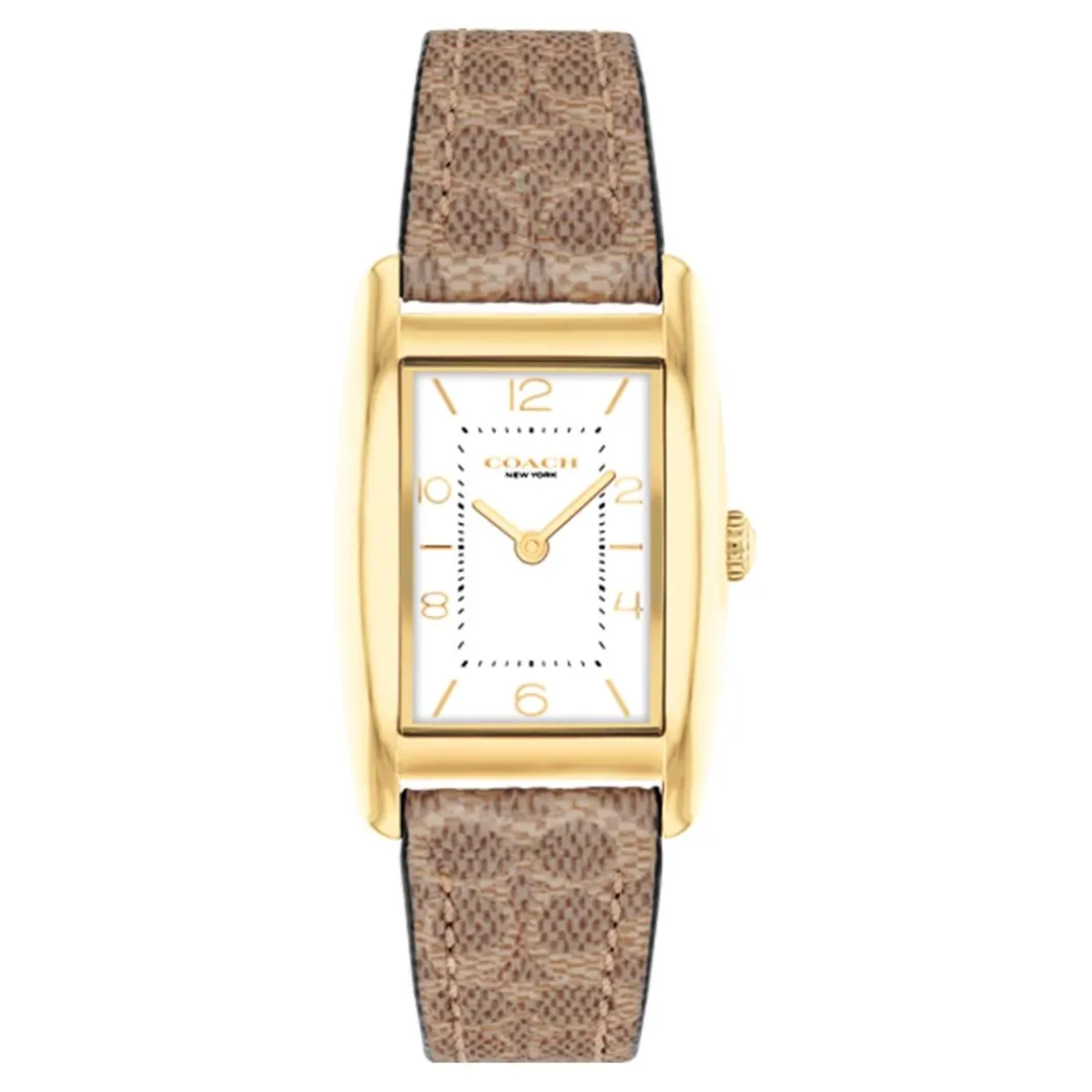 La Montre Femme Coach Reese – 14504355 apporte sophistication et élégance avec son boitier doré rectangulaire de 24 mm en acier. Son bracelet en cuir marron ajoute une touche de classe et de charme à cet accessoire. La montre possède un mouvement à quartz et son affichage est analogique, ce qui facilite la lecture de l’heure. L’étanchéité de 30 m (3 ATM) rend cette montre pratique pour un usage quotidien. Son fermoir de type boucle simple, assure un bon maintien au poignet. Par ailleurs, le verre minéral qui enveloppe le cadran protège la montre des éraflures et améliore la lisibilité. Ses détails faits avec soin en font une pièce incontournable de votre collection.