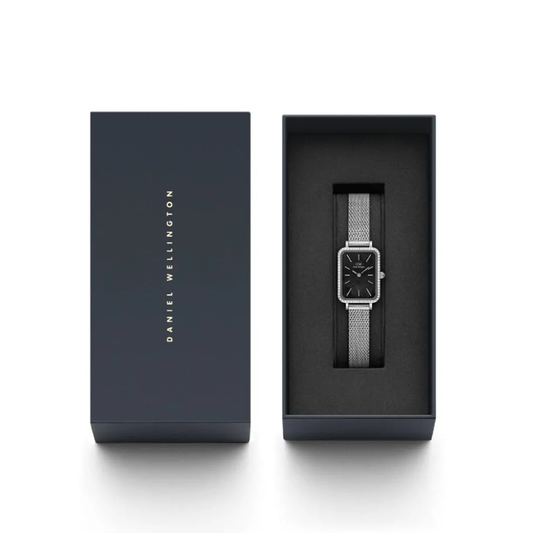 Cette Montre Femme Daniel Wellington affiche une élégance caractéristique de la marque. Son boîtier rectangulaire en acier de couleur argent donne une allure minimaliste, accentuée par un bracelet en acier de même couleur. L’horloge à affichage analogique est habillée d’un verre minéral. Le mouvement quartz, une étanchéité de 30 m et la boucle déployante comme fermeture complètent la sophistication de ce bijou. D’un diamètre de 20 x 26 mm, cette pièce est conçue spécialement pour les femmes.